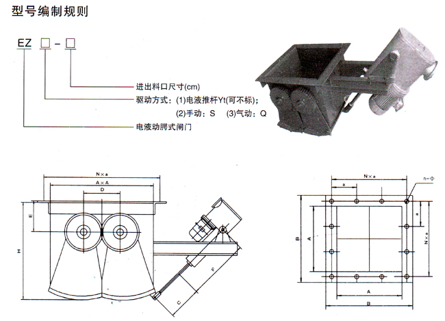 腭式閘門(mén)采用優(yōu)質(zhì)碳鋼焊接成形,結(jié)構(gòu)獨(dú)特,運(yùn)行靈活可靠,無(wú)卡阻現(xiàn)象。配用不同的傳動(dòng)裝置能滿足不同的工況需要。電動(dòng)腭式閘門(mén)采用帶有超載保護(hù)裝置的電動(dòng)推桿。可避免燒壞電機(jī),可以遠(yuǎn)距離操縱或程序控制,往復(fù)行程可以精確調(diào)節(jié)位置自鎖。南通中礦電液動(dòng)腭式閘門(mén)采用電液推桿,全液動(dòng)傳動(dòng),推拉力均可實(shí)現(xiàn)無(wú)級(jí)調(diào)速。南通中礦氣動(dòng)腭式閘門(mén)采用氣動(dòng)推桿,通過(guò)配件組合可以遠(yuǎn)距離操縱或現(xiàn)場(chǎng)控制。S為手動(dòng),Y為電液動(dòng),Q為氣動(dòng)。